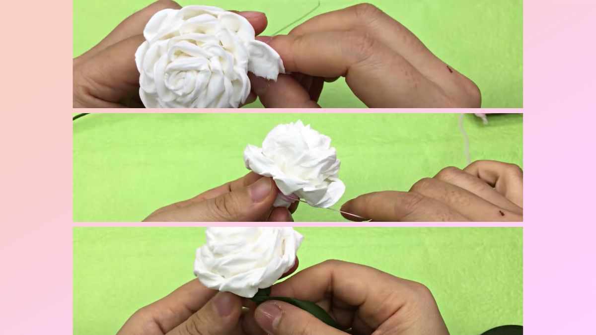 Sau khi đã tạo hình xong cho những cánh hoa, bước tiếp theo sẽ là xếp các lớp cánh hoa và kết hợp chúng với nhau để tạo thành một bông hoa hoàn chỉnh.