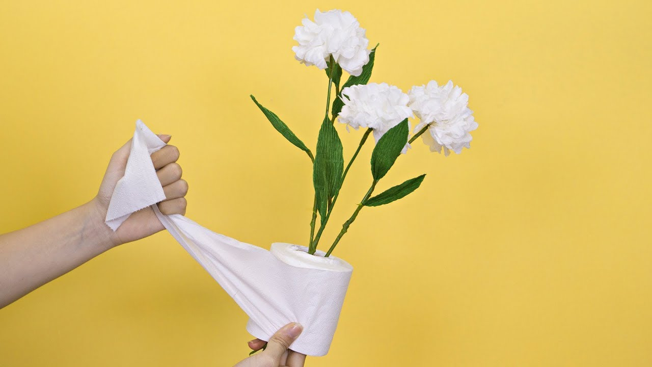 Làm hoa giấy từ giấy vệ sinh cực nhanh và đẹp (Nguồn: Internet)