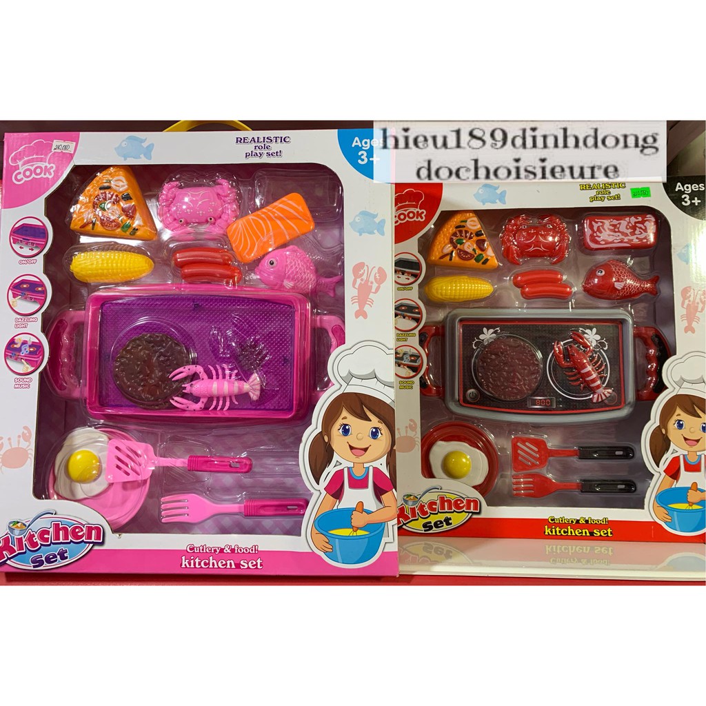 Bộ đồ chơi nấu bếp nướng có nhạc có đèn tặng kèm pin (Khách hàng chat chọn màu)
