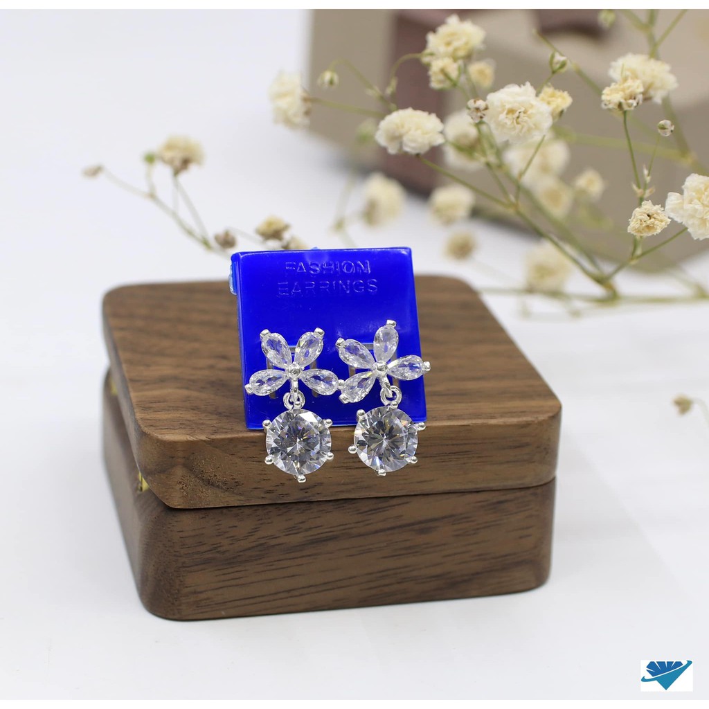 Bông tai hóa 4 cánh đá chủ 6mm bạc cao cấp s99 cho nữ