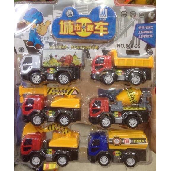 Vỉ 6 xe công trình nặng chắc tay hàng đẹp (tùy đợt hàng về mà mẫu xe khác nhau) (khách chat hỏi shop hiện còn mẫu nào)