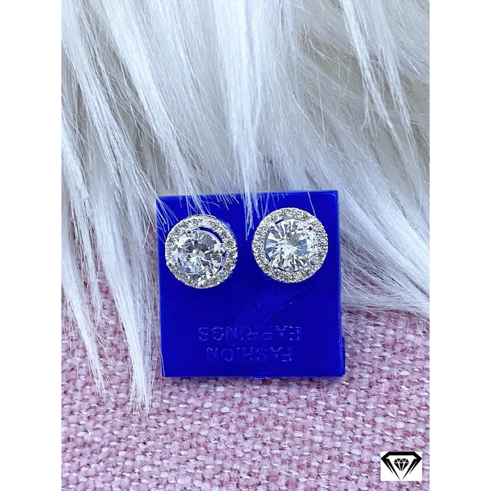 hoa tai nữ nụ tròn mix đá bạc ta nguyên chất