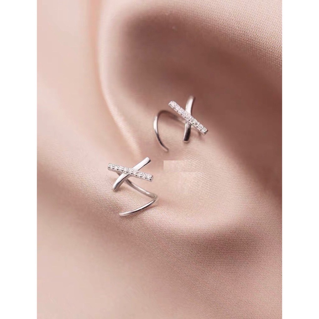 free ship hoa tai xoắn chữ x cực chất bạc ta mẫu mới