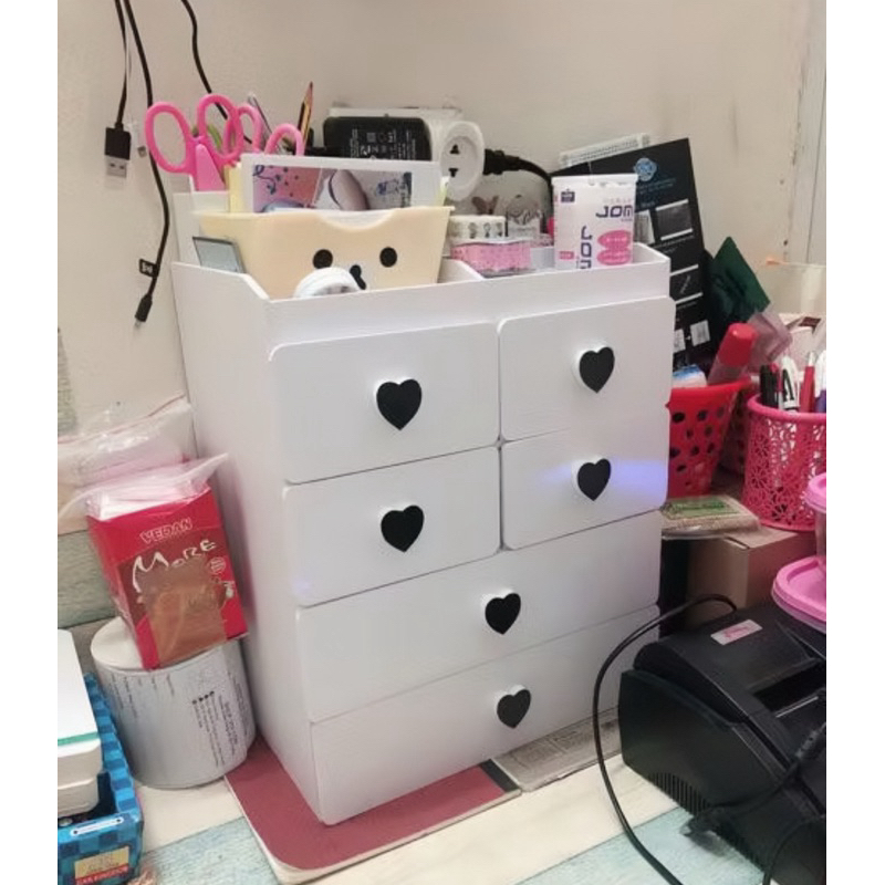 Tủ đựng mỹ phẩm 5 tầng trắng núm tim đen